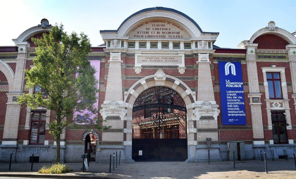 La Condition Publique est un édifice de 10 000 m² situé à Roubaix. Construit en 1902, cet ancien site de conditionnement textile a été acquis par la Métropole Européenne de Lille en 2000. L’édifice se développe sur un quadrilatère de près d’un hectare et se caractérise par une longue façade de 244 m, dont le riche appareillage en briques émaillées témoigne d’une grande homogénéité et d’un souci du détail décoratif. Sur les longs quais intérieurs situés de part et d’autre de la rue Couverte, étaient déchargées et rechargées les balles de laine avant l’expédition pour l’usinage.
